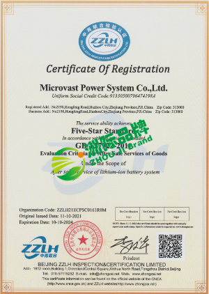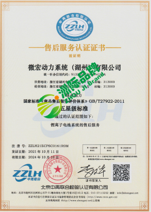 微宏动力系统(湖州)有限公司五星级售后服务认证