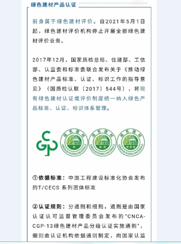 自2021年5月1日起,绿色建材评价机构停止开展全部绿色建材评价业务。