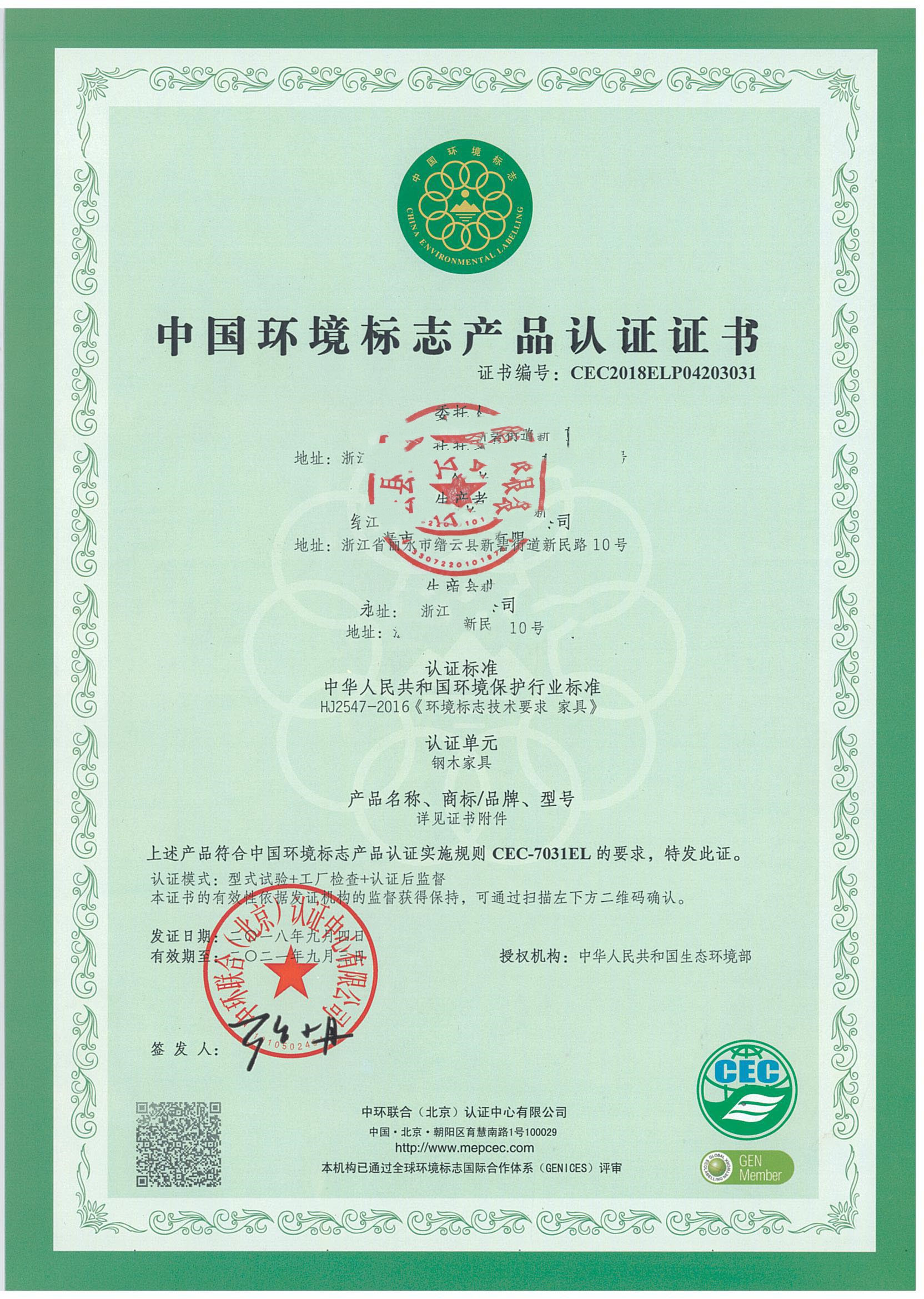 绿色建材产品认证证书