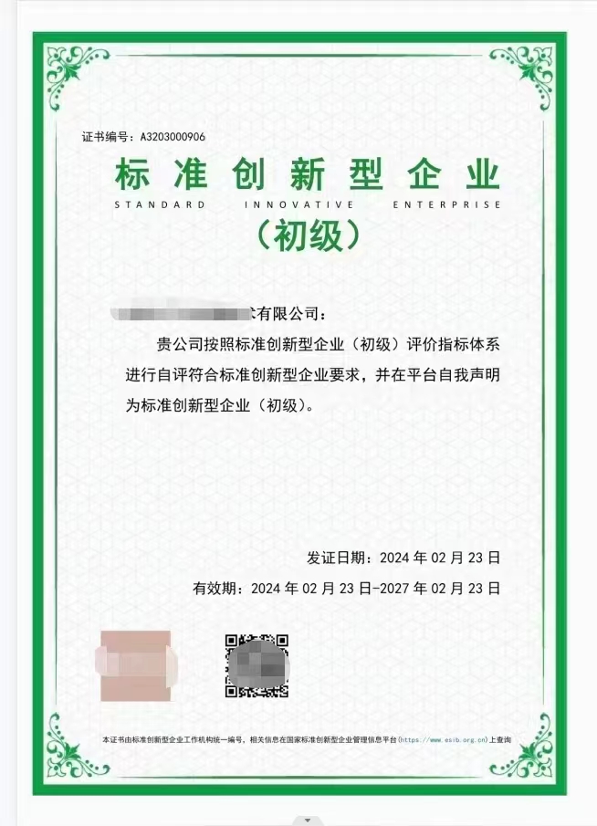 标准创新型企业证书