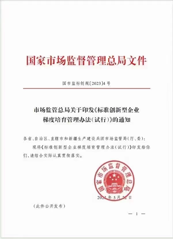 由国家市场监督管理局和国家标准化管理委员会两个共同管理部门审核的标准创新型企业