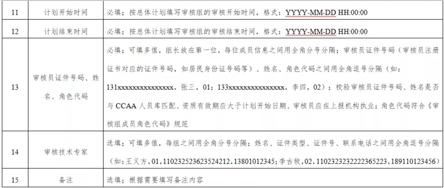 (三)认证机构可登录统一上报平台下载最新的审核计划上报EXCEL模板、基础代码表。