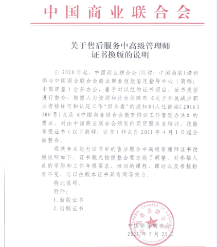 工信部、中商联-售后服务管理师培训统一新版证