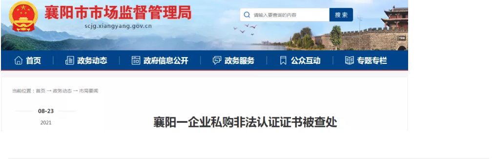 襄阳市市场监管局联合樊城区市场监管局,共同查处了一起非法买卖认证证书案件。