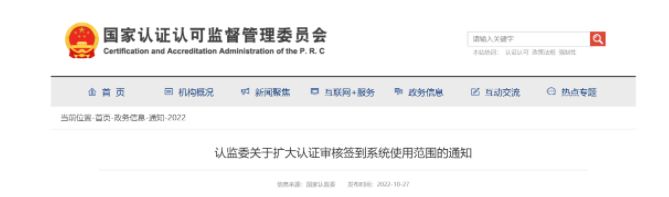 2022年12月1日起,在扩大使用范围内开展认证审核活动的,应当使用认证审核签到系统进行认证审核管理。